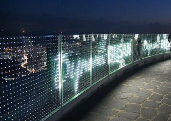 LED光(guāng)電玻璃屏主要由內層導電玻璃、LED芯片光源、外層玻璃三部分組成。除有LED燈珠外,無任何其他元器件,電路板完全透明,既保持了玻璃超(chāo)高透特性,又能通過(guò)光(guāng)電(diàn)軟(ruǎn)件控製來呈現顯示效果,從而實現(xiàn)圖文顯示及視頻(pín)播(bō)放。