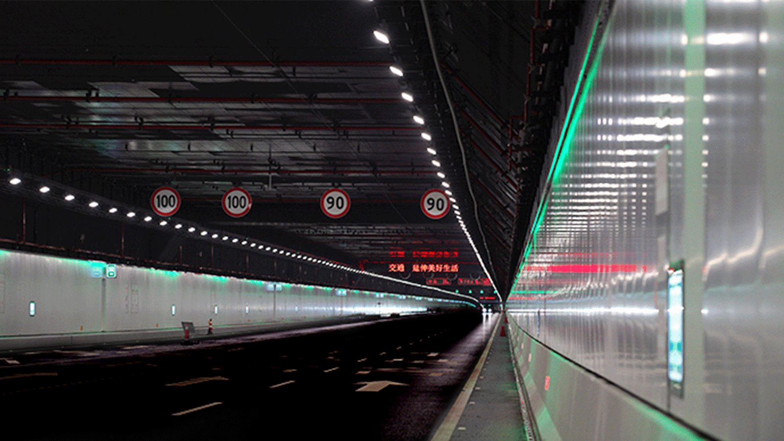 深中(zhōng)隧道長6845米,雙向八車道,是世界上最(zuì)長、最寬的鋼(gāng)殼混凝土海底沉管(guǎn)隧道。在隧(suì)道兩側,大香蕉9草在线可智能調節的全彩景觀燈帶可以根據環境溫度、車流狀況變色(sè)。發生緊急事件時,燈帶(dài)由近至遠(yuǎn)分段顯示紅、黃、綠色,能夠引導人員(yuán)有序疏(shū)散:如通過智控係統,以不同顏色區分精準定位消防門的(de)位(wèi)置,起到火災特殊(shū)疏(shū)散(sàn)時的有效警示(shì)作用。