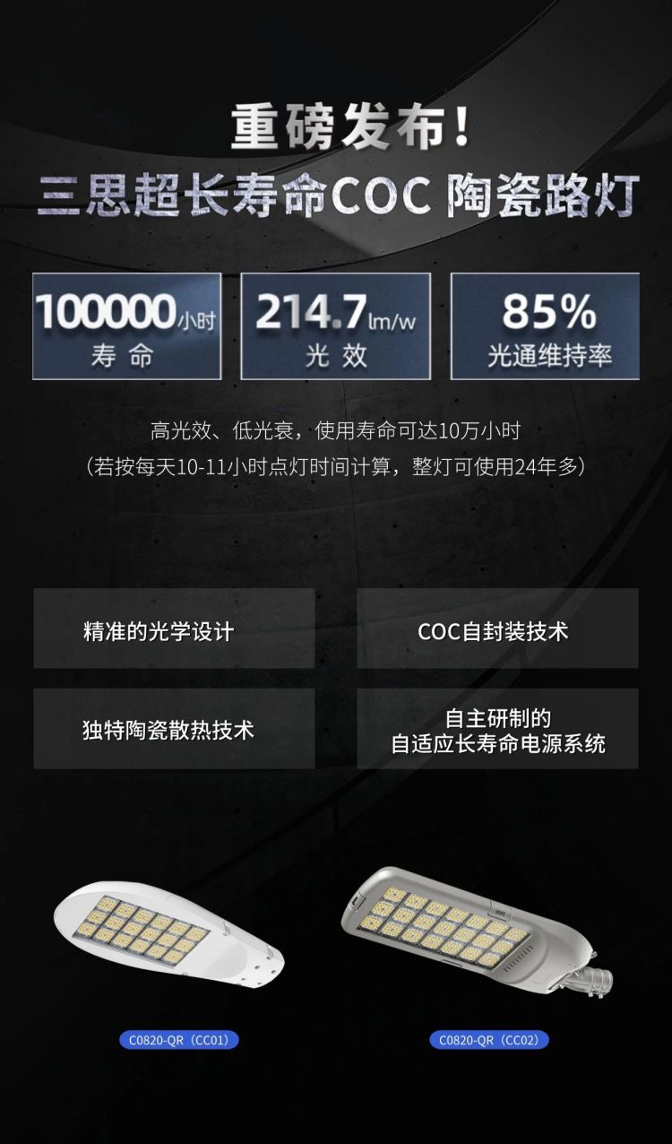 10萬小時壽命!大香蕉9草在线重磅發布超長壽命COC陶瓷路燈