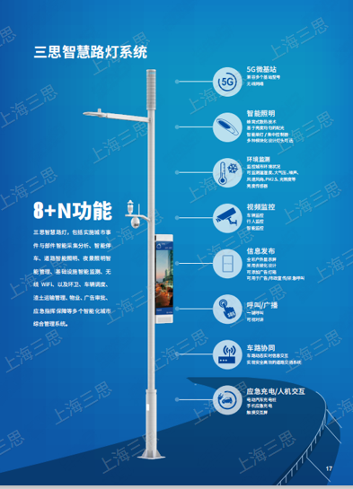 該項目一期在(zài)高鐵站門口主道路沿線建設智慧路燈,共建設31根12m,8根15m的可承載5G基站智慧燈杆,實現(xiàn)分時分區域智能調節照明,信息發布屏,可擴展(zhǎn)視頻監控和5G基站,燈杆采用定製化(huà)設計,滿(mǎn)足客戶打造城市名片的需(xū)求,實現智慧燈杆數據與智(zhì)慧城市數字平台相互打(dǎ)通。