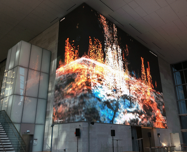 一塊長達108英尺、超過(guò)700萬像素的LED高清顯(xiǎn)示屏(píng)廣告牆(qiáng),將“瀑布(bù)”搬進了Salesforce的寫字樓裏,讓整個空間頓生活力。