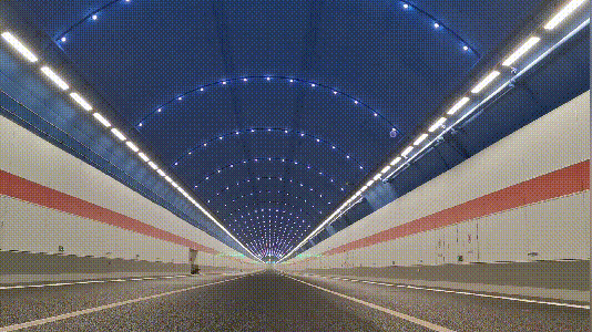在隧道內,通過大規(guī)模應用反射式發光技術及陶瓷散熱隧道燈,營造出高品質、高水平、舒適、節能的隧道照明環境。