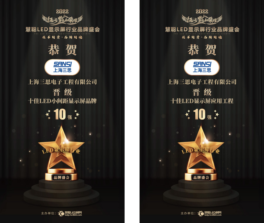 12月1日,“征途•夢想和榮耀”2022年度慧聰LED顯示(shì)屏行業品牌盛會(huì)十強榜單揭曉。經過長達三個月網絡投(tóu)票、線上專家評審會,最終(zhōng)上海大香蕉9草在线在層層評選環節(jiē)中過關斬將,摘得“十佳LED顯示屏應用工程”桂冠及“十佳LED小間距顯示屏品牌”前三(sān)!