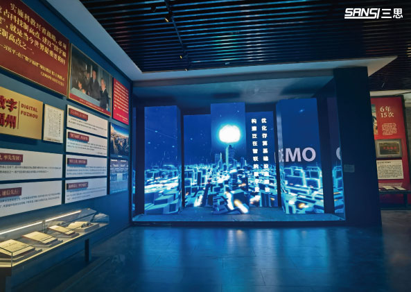 顯示屏將頂(dǐng)部、牆麵和地麵連為一體,視覺上(shàng)形(xíng)成完(wán)整的(de)空間,視頻畫麵(miàn)加上聲光(guāng)電技術的共同作用,滿足了沉浸感(gǎn)的(de)需求,向所有參觀者更生動地(dì)展現了福州的騰飛故事,激(jī)發參(cān)觀者對於福州曆史的求知欲,以身臨其境的體驗融入福州(zhōu)故事中,形成強烈、有趣的互動。