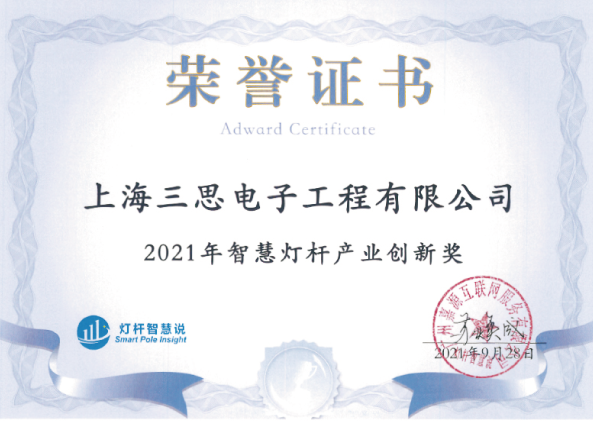 2021年中國國際(jì)信息通(tōng)信展暨(jì)5G+智慧燈杆融合發展論壇在北京國際會議中心隆(lóng)重召開!邀請了智慧燈杆產(chǎn)業相關領域(yù)的知名專家(jiā)、頭部企業、政府及(jí)各地相(xiàng)關單位領導(dǎo),並與行業知名(míng)專家共同就智慧燈杆建設運營(yíng)、跨界融合、模式創新等問題進行深度探討。第三屆智慧(huì)燈杆產業大獎”2021年智慧燈杆產業創新獎”該獎項是對深(shēn)耕智慧路燈行業多年企業的肯(kěn)定和(hé)鼓舞,也是對我司在智慧燈杆產業中起到(dào)的創新帶頭作用的褒獎。