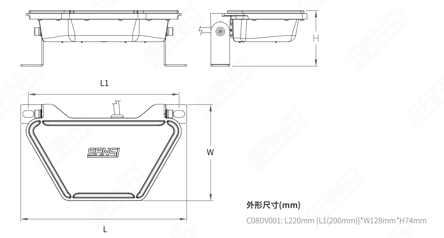 • ADC12壓鑄鋁燈體,一體(tǐ)式結構(gòu),PC出光麵罩,IP66防護等級抗鹽霧耐腐蝕